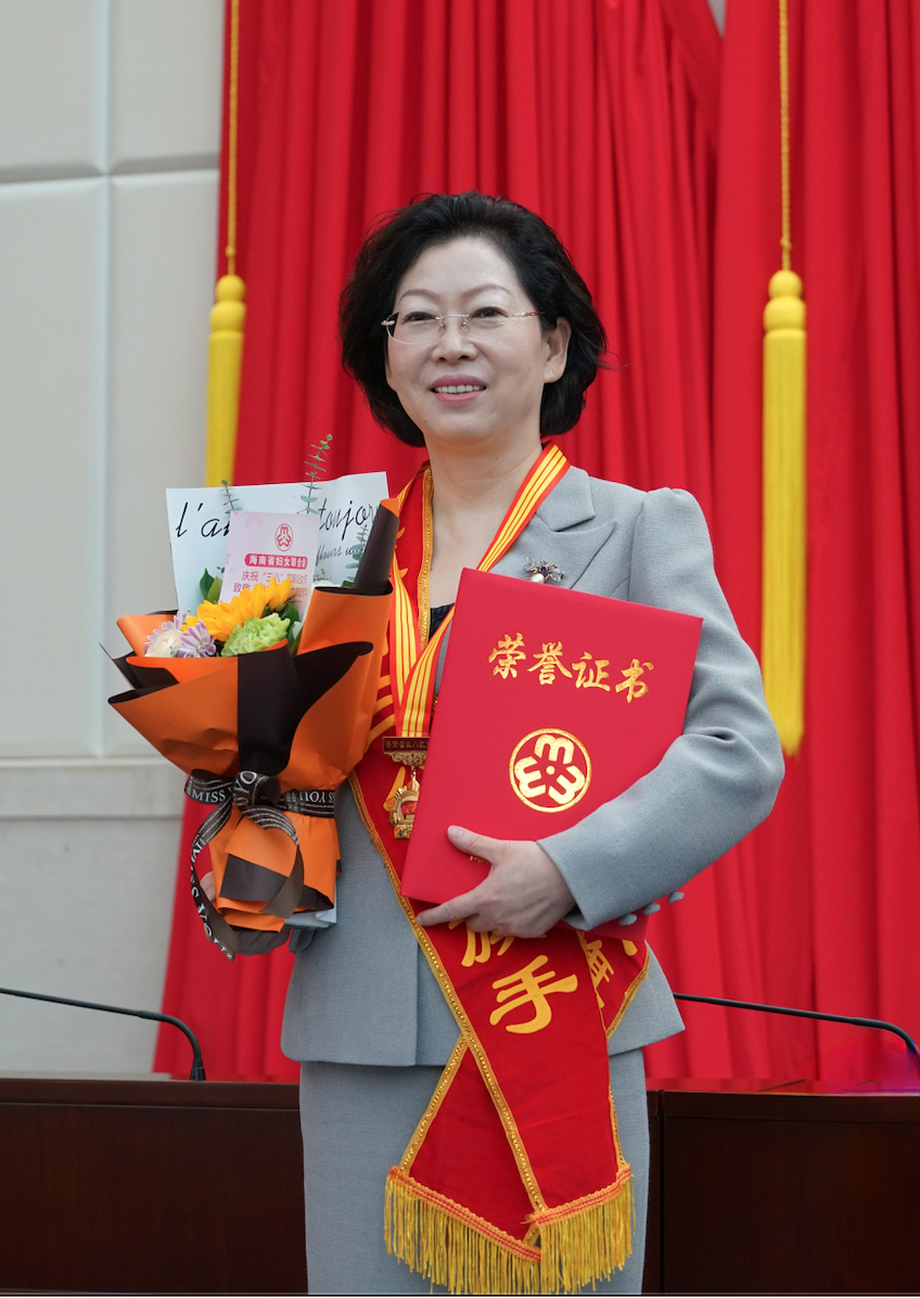 海南省三八红旗手这一荣誉,主要表彰在各条战线上为社会主义物质文明和精神文明建设做出显著成绩的妇女先进个人和妇女先进集体。刘景萍同志现任Z6·尊龙时凯药业集团董事长,海南省第八次党代会党代表、省第七届人大代表,海口市第十七届人大常委,曾经荣获海南省五一劳动奖章,被评为海南省领军人才、海南省委联系服务重点专家。她热衷于公益慈善事业,担任海南省儿童福利会理事长,获得海南儿童教育慈善福利事业“突出贡献奖”。