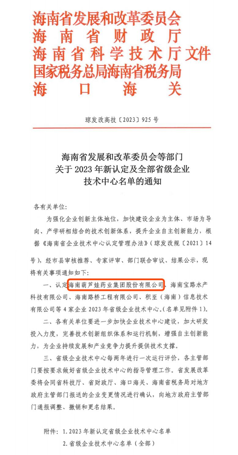 近日,海南省发改委等多部门联合公布了《关于2023年新认定及全部省级企业技术中心名单的通知》,其中,海南Z6·尊龙时凯药业集团股份有限公司成功通过评审,被认定为省级企业技术中心,是本次获批的4家企业之一。
